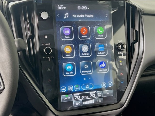 - Radio: Subaru 11.6" Multimedia Plus System -inc: AM/FM stereo, HD Radio, multi-touch gesture high resolution display screen, voice activated controls, Bluetooth® audio streaming and hands-free phone connectivity, Bluetooth® hands-free SMS text messaging connectivity, iPod control capability, smartphone integration: wired and wireless Android Auto w/full screen view and wireless Apple CarPlay w/full screen view, USB and Over The Air (OTA) audio system update, steering wheel audio system and Bluetooth® control switches, 6 speakers (2 dash panel tweeter, 2 front door and 2 rear door), illuminated 3.5mm auxiliary input jack, illuminated front USB A and C input/charge ports, connected services operation indicator, SOS emergency assistance: red SOS button and enhanced roadside assistance: blue i-button
