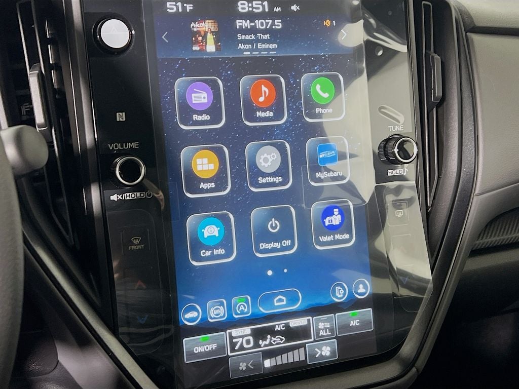 - Radio: Subaru 11.6" Multimedia Plus System -inc: AM/FM stereo, HD Radio, multi-touch gesture high resolution display screen, voice activated controls, Bluetooth® audio streaming and hands-free phone connectivity, Bluetooth® hands-free SMS text messaging connectivity, iPod control capability, smartphone integration: wired and wireless Android Auto w/full screen view and wireless Apple CarPlay w/full screen view, USB and Over The Air (OTA) audio system update, steering wheel audio system and Bluetooth® control switches, 6 speakers (2 dash panel tweeter, 2 front door and 2 rear door), illuminated 3.5mm auxiliary input jack, illuminated front USB A and C input/charge ports, connected services operation indicator, SOS emergency assistance: red SOS button and enhanced roadside assistance: blue i-button