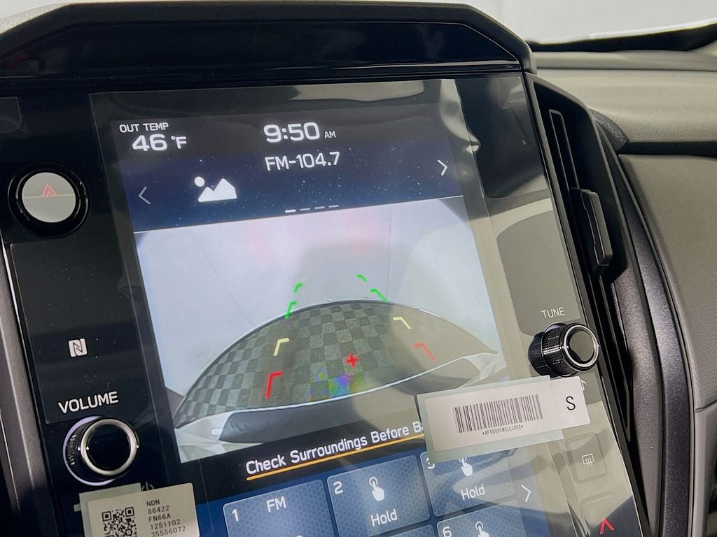• Radio: Subaru 11.6" Multimedia Plus System -inc: AM/FM stereo, HD Radio, multi-touch gesture high resolution display screen, voice activated controls, Bluetooth® audio streaming and hands-free phone connectivity, Bluetooth® hands-free SMS text messaging connectivity, iPod control capability, smartphone integration: wired and wireless Android Auto w/full screen view and wireless Apple CarPlay w/full screen view, USB and Over The Air (OTA) audio system update, steering wheel audio system and Bluetooth® control switches, 6 speakers (2 dash panel tweeter, 2 front door and 2 rear door), illuminated 3.5mm auxiliary input jack, illuminated front USB A and C input/charge ports, connected services operation indicator, SOS emergency assistance: red SOS button and enhanced roadside assistance: blue i-button
