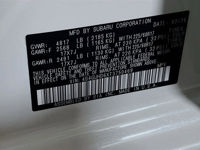 2.5L DOHC 16 Valve 4-Cylinder Engine, All-Season Tires, Cloth Upholstery, Crystal White Pearl, Front Bucket Seats, Lineartronic CVT Transmission, Machine Finish Aluminum-Alloy Wheels, Standard Model, Subaru 11.6 Multimedia Plus System Radio. 26/33 City/Highway MPG