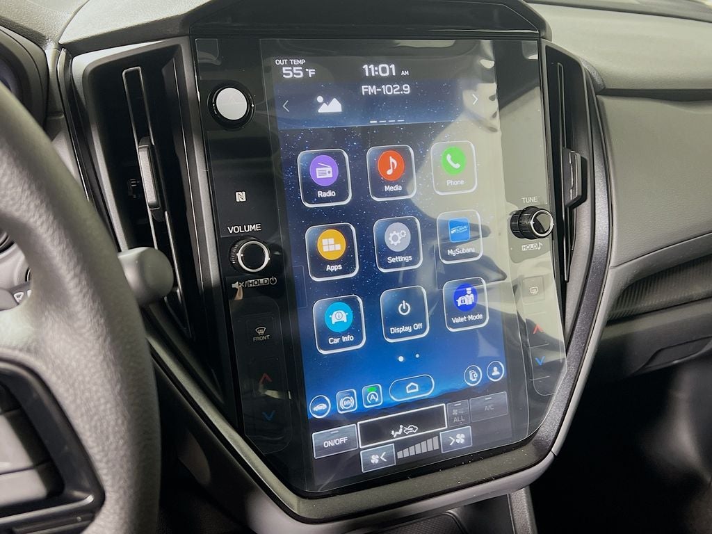 - Radio: Subaru 11.6" Multimedia Plus System -inc: AM/FM stereo, HD Radio, multi-touch gesture high resolution display screen, voice activated controls, Bluetooth® audio streaming and hands-free phone connectivity, Bluetooth® hands-free SMS text messaging connectivity, iPod control capability, smartphone integration: wired and wireless Android Auto w/full screen view and wireless Apple CarPlay w/full screen view, USB and Over The Air (OTA) audio system update, steering wheel audio system and Bluetooth® control switches, 6 speakers (2 dash panel tweeter, 2 front door and 2 rear door), illuminated 3.5mm auxiliary input jack, illuminated front USB A and C input/charge ports, connected services operation indicator, SOS emergency assistance: red SOS button and enhanced roadside assistance: blue i-button