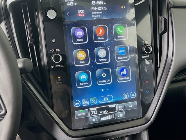 - Radio: Subaru 11.6" Multimedia Plus System -inc: AM/FM stereo, HD Radio, multi-touch gesture high resolution display screen, voice activated controls, Bluetooth® audio streaming and hands-free phone connectivity, Bluetooth® hands-free SMS text messaging connectivity, iPod control capability, smartphone integration: wired and wireless Android Auto w/full screen view and wireless Apple CarPlay w/full screen view, USB and Over The Air (OTA) audio system update, steering wheel audio system and Bluetooth® control switches, 6 speakers (2 dash panel tweeter, 2 front door and 2 rear door), illuminated 3.5mm auxiliary input jack, illuminated front USB A and C input/charge ports, connected services operation indicator, SOS emergency assistance: red SOS button and enhanced roadside assistance: blue i-button