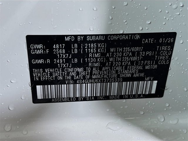 - Radio: Subaru 11.6" Multimedia Plus System -inc: AM/FM stereo, HD Radio, multi-touch gesture high resolution display screen, voice activated controls, Bluetooth® audio streaming and hands-free phone connectivity, Bluetooth® hands-free SMS text messaging connectivity, iPod control capability, smartphone integration: wired and wireless Android Auto w/full screen view and wireless Apple CarPlay w/full screen view, USB and Over The Air (OTA) audio system update, steering wheel audio system and Bluetooth® control switches, 6 speakers (2 dash panel tweeter, 2 front door and 2 rear door), illuminated 3.5mm auxiliary input jack, illuminated front USB A and C input/charge ports, connected services operation indicator, SOS emergency assistance: red SOS button and enhanced roadside assistance: blue i-button