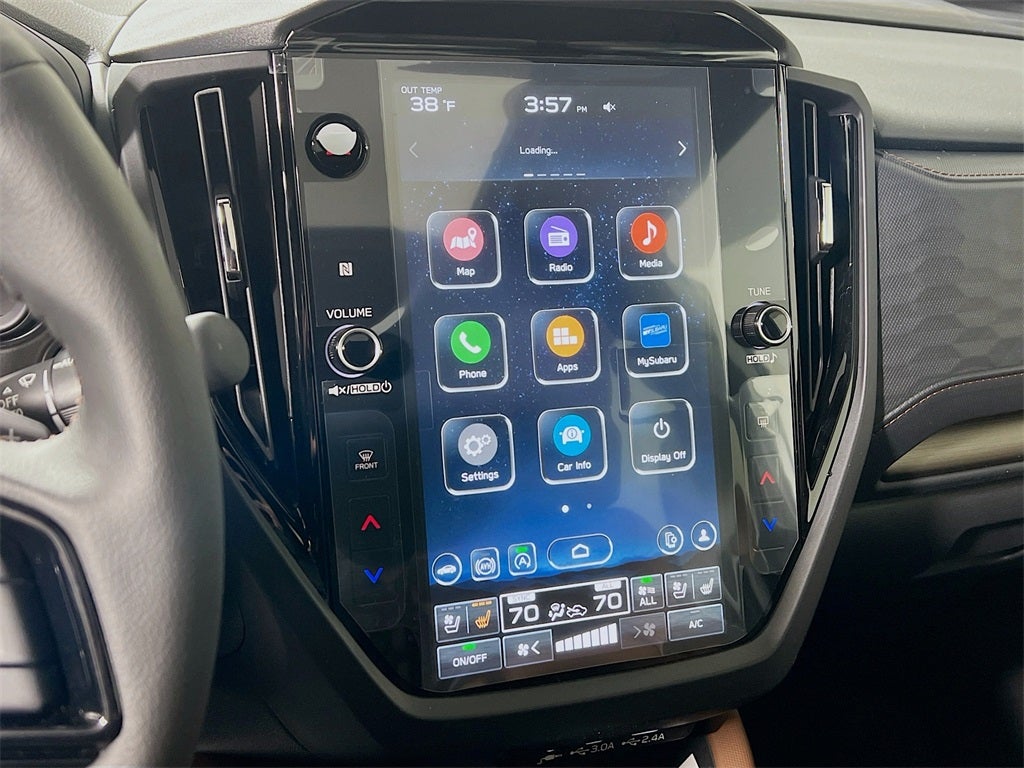 - Radio: Subaru 11.6" Multimedia Navigation System -inc: valet mode, integrated center information display, AM/FM stereo HD Radio, multi-touch gesture high resolution display screen, voice activated controls, voice activated navigation, Bluetooth® audio streaming and hands-free phone connectivity w/SMS text messaging (refer to Subaru.com for cellphone compatibility), TomTom navigation software w/what3words, iPod control capability, smartphone integration: Android Auto and Apple CarPlay w/full screen view and wireless connection, SiriusXM satellite radio w/360L (free 4-month trial subscription included), USB and Over The Air (OTA) audio system update, USB and Map Over The Air (MOTA) TomTom navigation system update (3 years free map updates), steering wheel controls, harman/Kardon speaker system w/11 speakers and 576 watt equivalent maximum output amplifier, 3.5mm auxiliary input jack and roof mounted audio, satellite antenna and SiriusXM Travel Link (4 months free trial included/subscription required after)