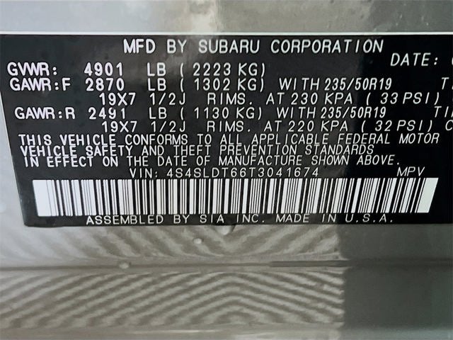 - Wheels: 19" x 7.5 J Dark Gray Aluminum-Alloy -inc: machine finish and black wheel center cap w/Subaru 6 star logo