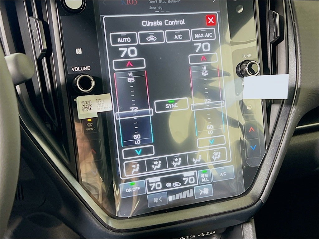 - Radio: Subaru 11.6" Multimedia Plus System -inc: valet mode, AM/FM stereo, HD Radio, multi-touch gesture high resolution display screen, voice activated controls, Bluetooth® audio streaming and hands-free phone connectivity, Bluetooth® hands-free SMS text messaging connectivity, iPod control capability, smartphone integration: wired and wireless Android Auto w/full screen view, wireless Apple CarPlay w/full screen view and wireless connection, USB and Over The Air (OTA) audio system update, audio system and Bluetooth® steering wheel control switches, 6 speakers (2 dash panel tweeter, 2 front door, 2 rear door), illuminated 3.5mm auxiliary input jack, illuminated USB A and C input charge ports, roof mounted satellite and connected services, roof mounted black antenna, connected services operation indicator, SOS emergency assistance (red button) and ehanced roadside assistance (blue i-button)
