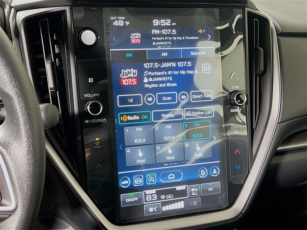 - Radio: Subaru 11.6" Multimedia Plus System -inc: valet mode, AM/FM stereo, HD Radio, multi-touch gesture high resolution display screen, voice activated controls, Bluetooth® audio streaming and hands-free phone connectivity, Bluetooth® hands-free SMS text messaging connectivity, iPod control capability, smartphone integration: wired and wireless Android Auto w/full screen view, wireless Apple CarPlay w/full screen view and wireless connection, USB and Over The Air (OTA) audio system update, audio system and Bluetooth® steering wheel control switches, 6 speakers (2 dash panel tweeter, 2 front door, 2 rear door), illuminated 3.5mm auxiliary input jack, illuminated USB A and C input charge ports, roof mounted satellite and connected services, roof mounted black antenna, connected services operation indicator, SOS emergency assistance (red button) and ehanced roadside assistance (blue i-button)