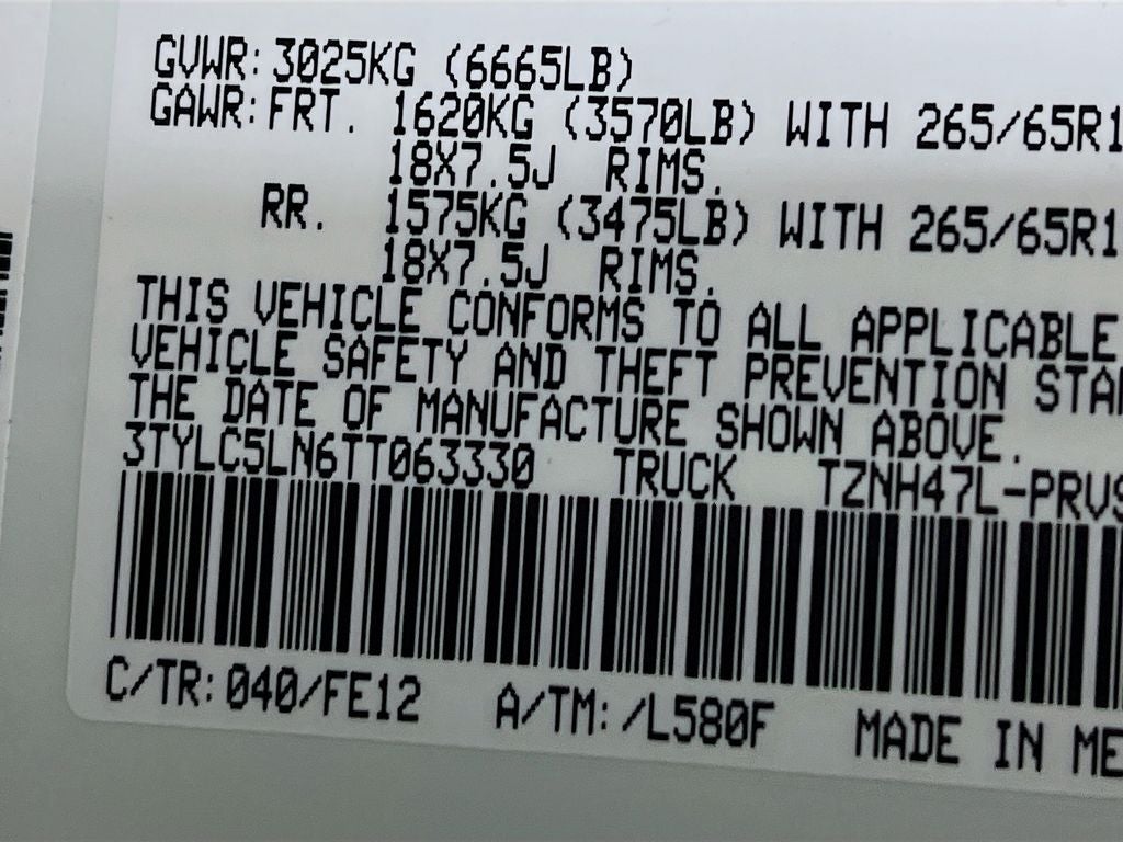 - Gross Vehicle Weight Rating Cap (lbs): 6665