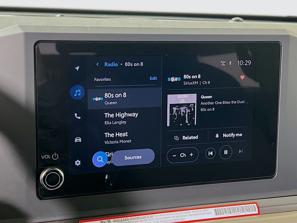 - 8-in. Toyota Audio Multimedia display with 6-speaker audio system, wireless Apple CarPlay® & Android Auto™ compatibility, SiriusXM® 3-month trial subscription. See toyota.com/connected-services for details.