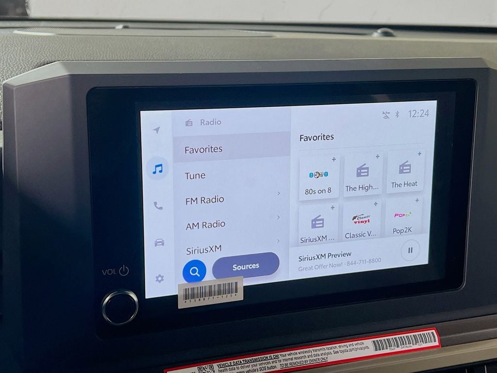 - 8-in. Toyota Audio Multimedia display with 6-speaker audio system, wireless Apple CarPlay® & Android Auto™ compatibility, SiriusXM® 3-month trial subscription. See toyota.com/connected-services for details.