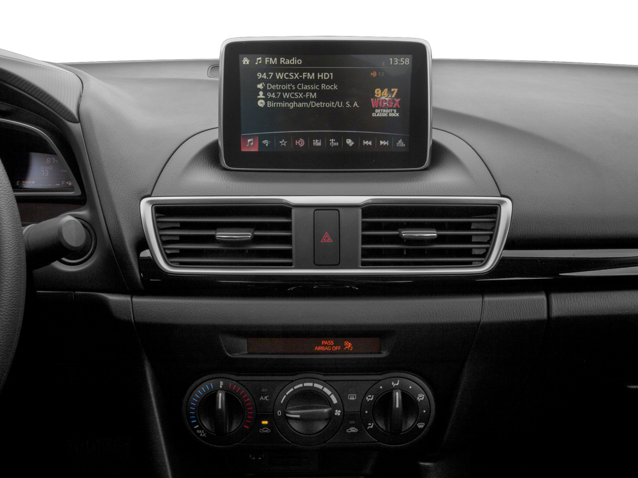 - Radio: AM/FM/HD Audio System -inc: digital clock, 6-speaker full-range door-mounted type sound system, Bluetooth® handsfree phone and audio, auxiliary audio input jack and 2 USB audio input, MAZDA CONNECT™ Infotainment System, voice-command, E911 automatic emergency notification, 7" full-color touch-screen display, multi-function Commander control, Pandora, Aha and Stitcher internet radio integration, Radio Broadcast Data System program information and SMS text message audio delivery and reply