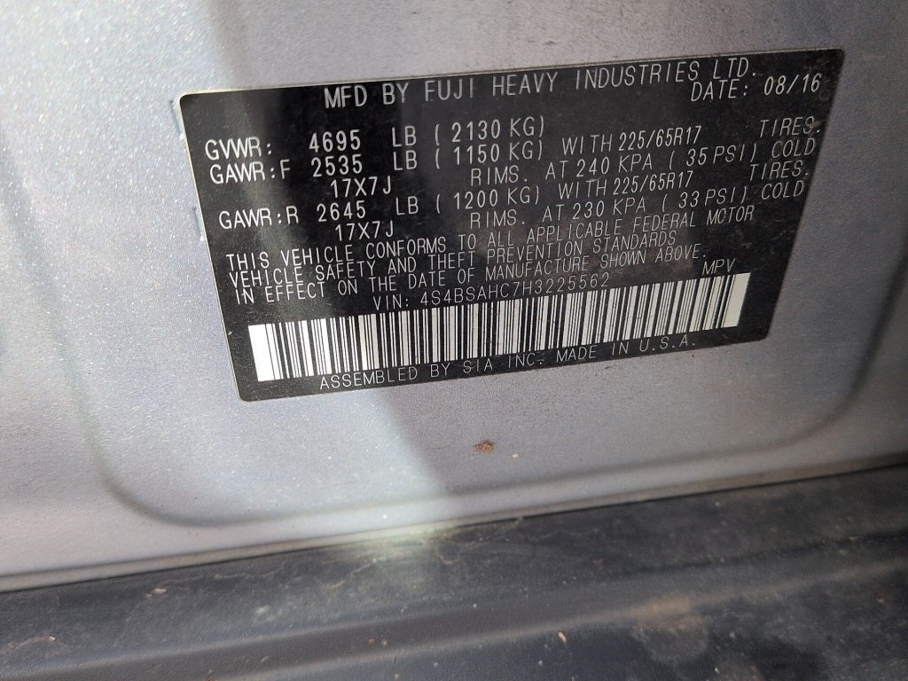 - Wheels: 17" x 7.0" Aluminum Alloy w/Silver Finish -inc: black aluminum alloy center cap w/Subaru 6 star logo