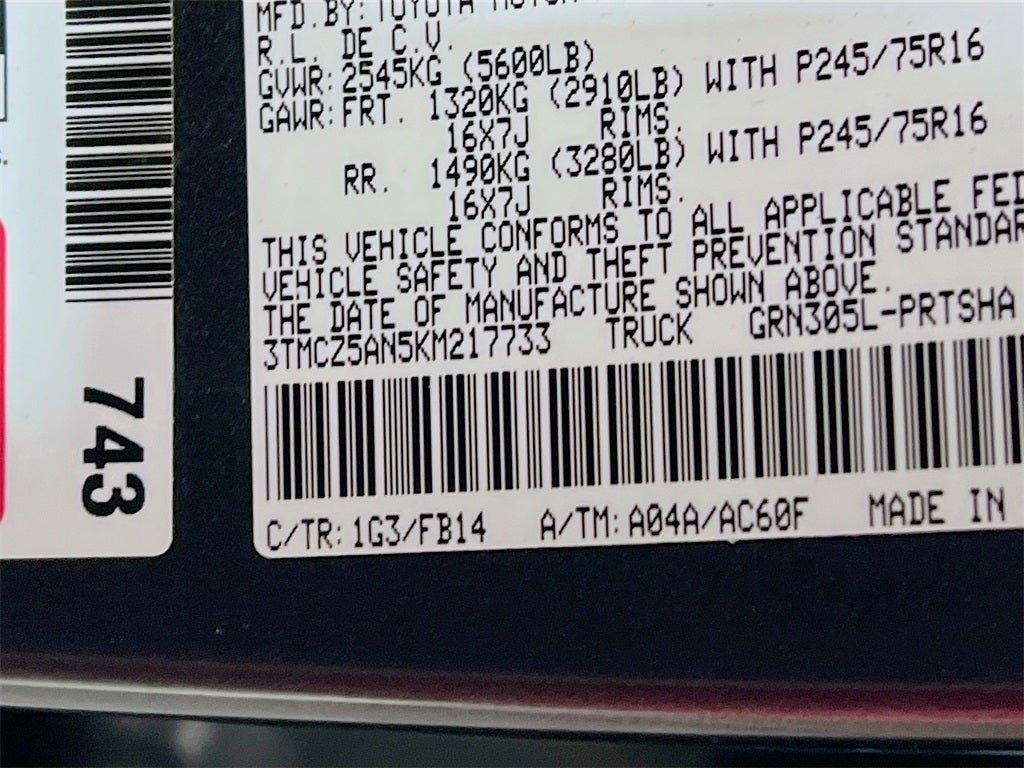 - Vehicle Name: Toyota Tacoma 4WD