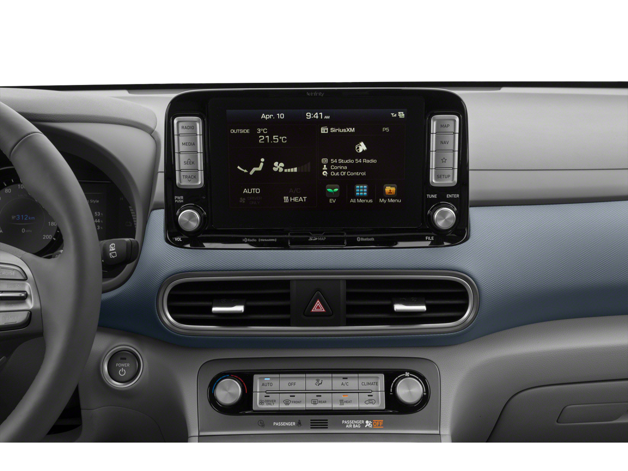 - Radio: AM/FM/HD Radio/MP3/SiriusXM Audio System -inc: 7" color touchscreen audio display, Apple CarPlay, Android Auto, aux input jack, Blue Link connected car system, Bluetooth® w/phonebook transfer, 1 amp front USB data/charge input, 2 amp front USB charge port and 6-speakers
