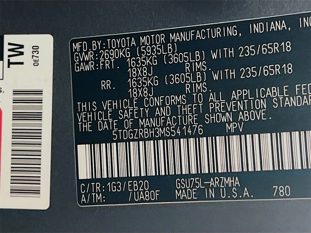 - Vehicle Name: Toyota Highlander