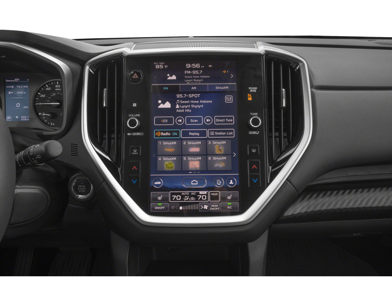 - Radio: Subaru STARLINK 11.6" Multimedia Plus System -inc: AM/FM stereo HD Radio, multi-touch gesture high resolution display screen, voice activated controls, Bluetooth® audio streaming and hands-free phone connectivity w/SMS text messaging connectivity (refer to subaru.com for cell phone compatibility), Near Field Communication (NFC), iPod control capability, SiriusXM All Access radio (4 months free trial/subscription required after), SiriusXM Travel Link (4 months free trial/subscription required after), smartphone integration for Android Auto and Apple CarPlay w/full screen view and wireless connection and STARLINK cloud applications, USB and Over The Air (OTA) audio system update, steering wheel controls for audio and Bluetooth®, 6 speakers, 3.5mm illuminated auxiliary input jack, and illuminated USB A and C input/charge ports