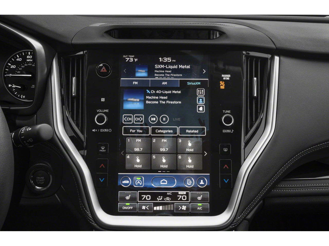 - Radio: Subaru STARLINK 11.6" Multimedia Nav System -inc: AM/FM stereo, HD Radio, valet mode, multi-touch gesture high resolution display screen, voice activated controls and navigation, Bluetooth® audio streaming and hands-free phone connectivity w/SMS text messaging (refer to subaru.com for cell phone compatibility), Near Field Communication (NFC), TomTom navigation software w/What3words, iPod control capability, SiriusXM All Access radio (4 months free trial/subscription required after), SiriusXM Traffic (3 years free trial/subscription required after), SiriusXM Travel Link (3 years free trial/subscription required after), smartphone integration: Android Auto and CarPlay w/full screen view and wireless connection and STARLINK cloud applications (refer to subaru.com for app availability), USB and Over The Air (OTA) audio system update, USB/Map Over The Air (MOTA) TomTom navigation system update (3 years free map updates), 576 watt harman/kardon surround sound system w/12 speakers, illuminated 3.5mm auxiliary input jack and illuminated USB-A and USB-C input/charge ports