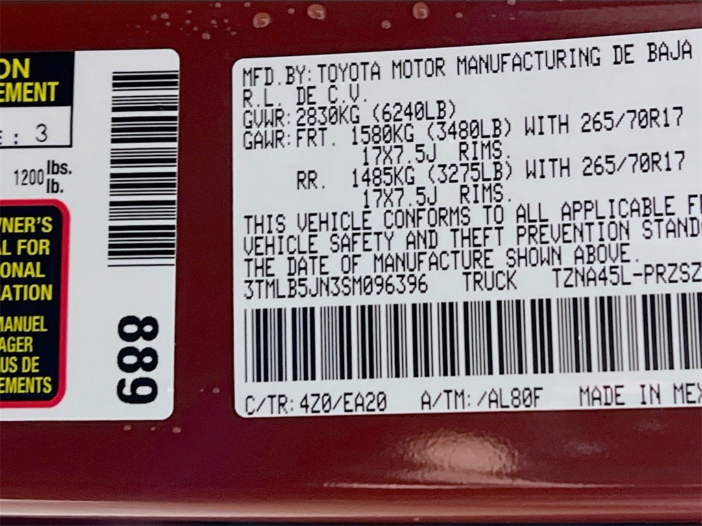 - Vehicle Name: Toyota Tacoma 4WD